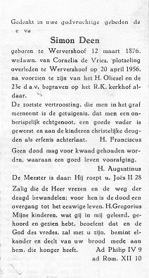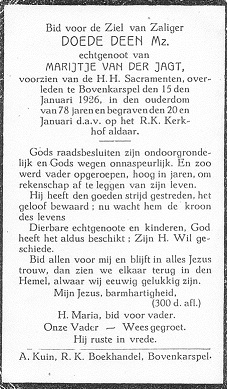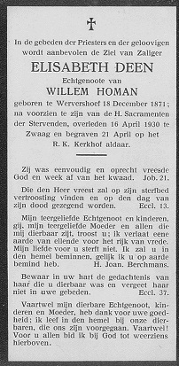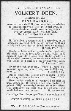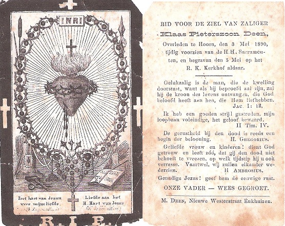 in Hoogedijk ( Zwaag ), overleden 16 april 1909 in