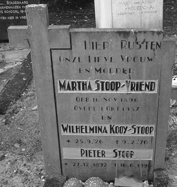5a11f1d   Maartje Vriend, geboren 16 november 1896 in Hem, overleden 1 oktober 1957 in Alkmaar, getrouwd 18 april 1921 in Venhuizen met Pieter Stoop, geboren 27 december 1892 in Ouwe Niedorp, overleden 10 juni 1990in Catrijp. zoon van Cornelis Stoop en Aagje Polie.